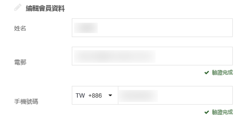 填寫信箱及手機並完成驗證程序。