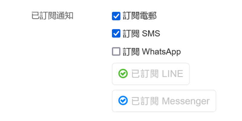 STEP 2:勾選「訂閱電郵」「訂閱SMS」