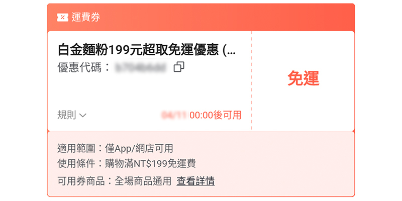 白金麵粉:消費滿$199即享超取免運 乙次