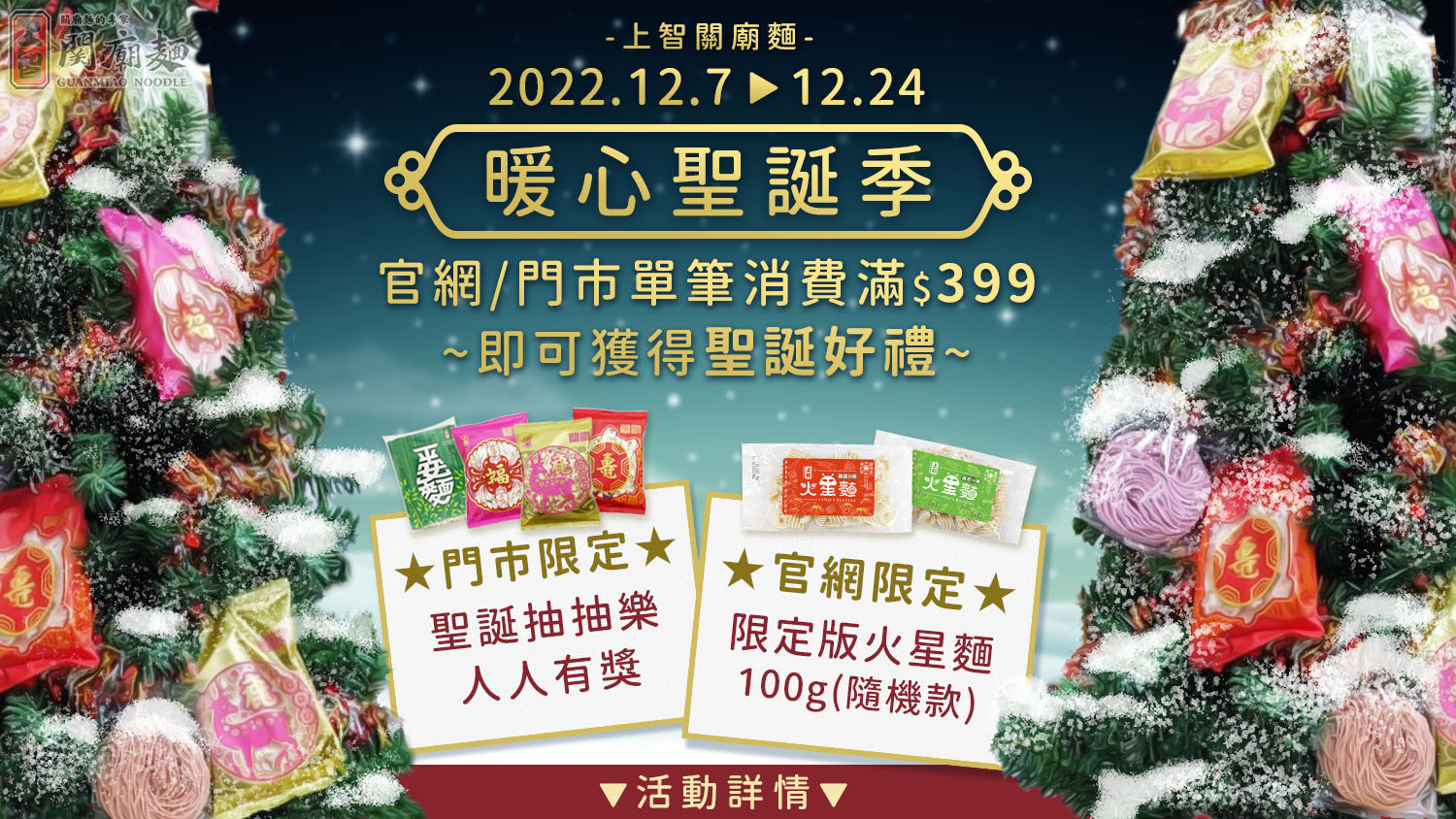 於 上智實體門市 購買 養生關廟麵/圈圈麵系列,且單筆消費滿399元,即可獲得抽獎機會乙次。張張都有獎,買愈多抽愈多!
